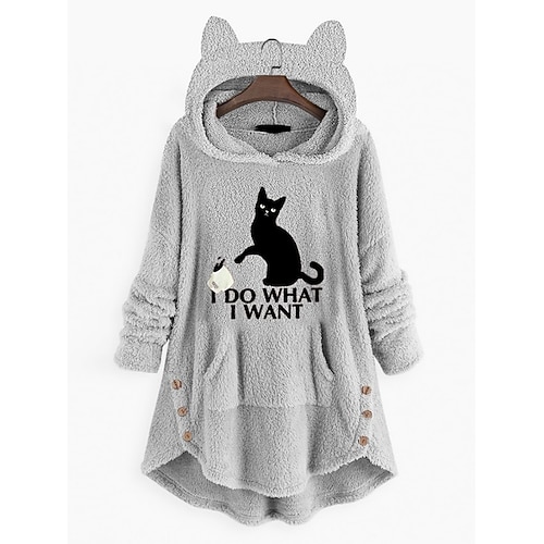 Damen Kapuzenpullover Katze Lässig Langarm Mit Kapuze Lange Oberteile Straße Alltagskleidung Lässig Rosa Wein Dunkelpink Blau Grau Herbst Winter
