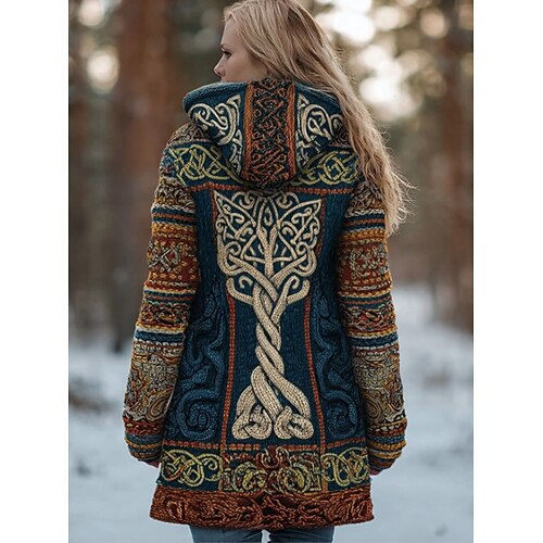 Damen T Shirt Grafik Stammes Vintage Stilvoll Lässig Langarm Rundhalsausschnitt Lange Oberteile Täglich Druck Blau Braun Grün Khaki Frühling Herbst