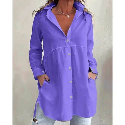 Damen Bluse Einfarbig Lässig Langarm Mit Kapuze Lange Oberteile Täglich Tasche Knöpfe Gelb Wein Fuchsie Grau Sommer Herbst