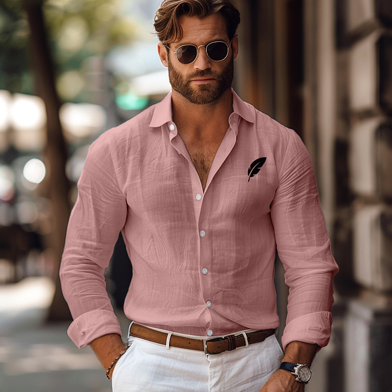Men's Linen Shirt Leaf Outdoor Vacation White Pink Green Gray Long Sleeve Collar Spring Fall Clothing Apparel Button Up