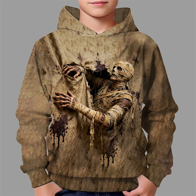 Halloween Boys' 3D Skull Hoodie Long Sleeve Spring Fall Fashion Streetwear Kids 4-12 Years Hooded Outdoor Casual Daily Regular Fit