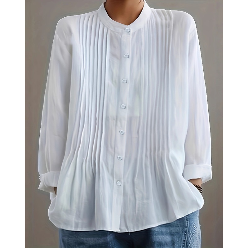 Women's Blouse Plain Casual Long Sleeve Crew Neck Regular Tops Daily Holiday Going out Ruched Buttons White Navy Blue Summer Spring