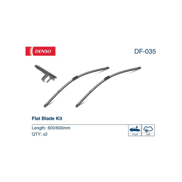 Pyyhkijänsulka, Etu, vasen, Etu, oikea Denso DF-035 - vw multivan t5, transporter t5 buss, transporter t5 flak/chassi, transporter t5 skåp