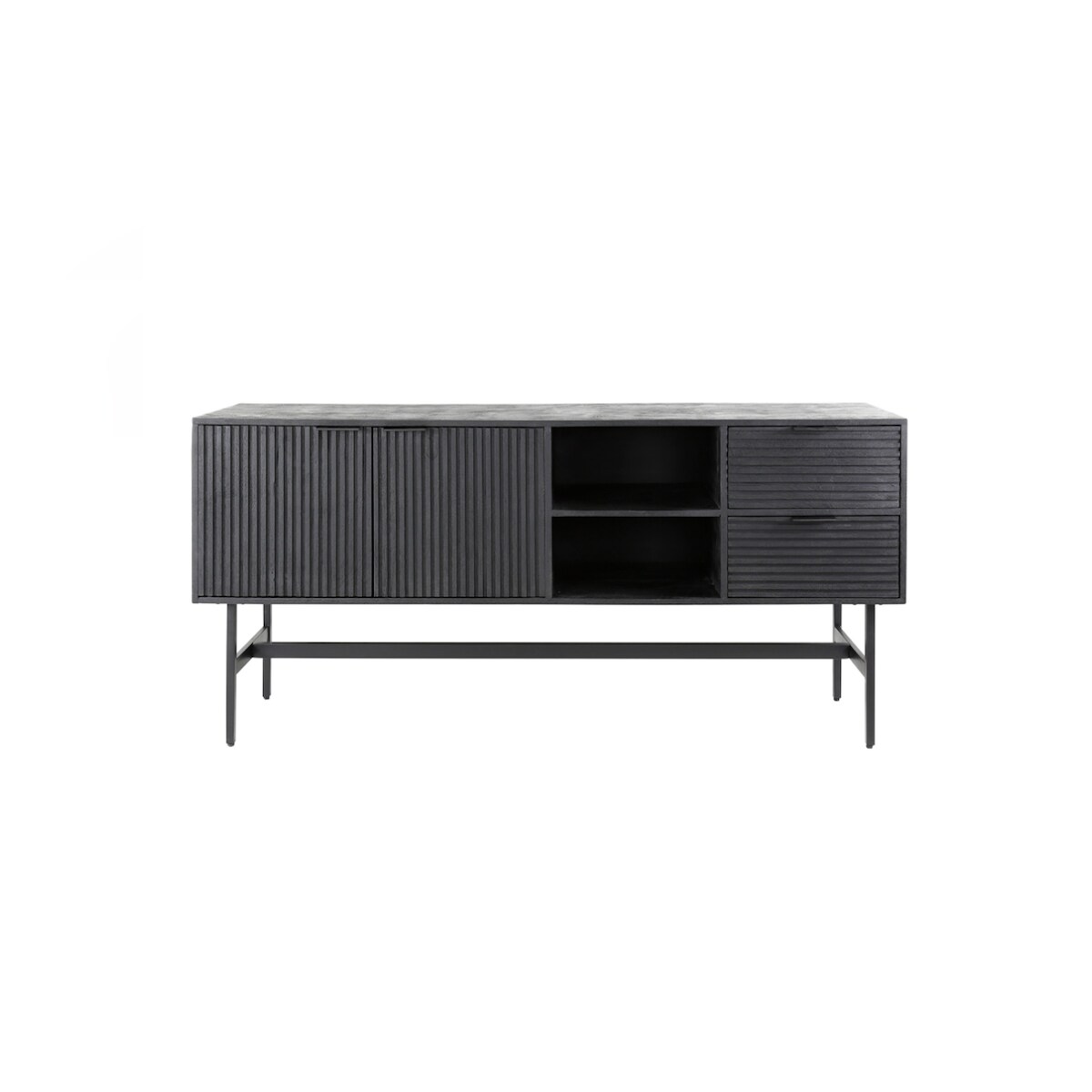 KAWOLA Sideboard LORCA Mango massiv schwarz 2 Türen 2 Schubladen
