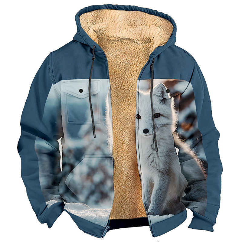 Men's Fox Fleece Hoodie Jacket Sweatshirt Fashion Cool Daily Vintage Retro Hooded Outdoor Gift Hunting Blue Brown Brown 2 Zipper Pocket Fall Winter Designer S M L XL XXL XXXL
