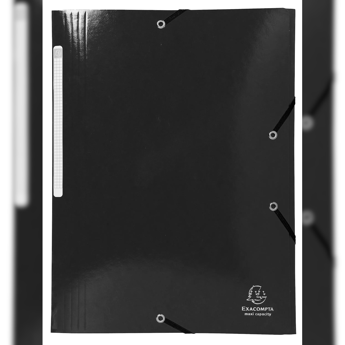 Exacompta 55821E 25x Iderama, Sammelmappe mit 3 Klappen und Gummizug, Maxi Kapazität, aus Colorspan-Karton 425g/qm, für DIN A4 - Schwarz