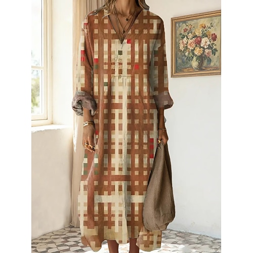 Per donna Abito Midi Vestito Estivo Abito a trapezio Vacanza Casual Boho Uscire Spiaggia Vestibilità comoda Grafico Geometrico Manica Lunga Scollo a V Rosso Viola Verde Grigio scuro Primavera Autunno