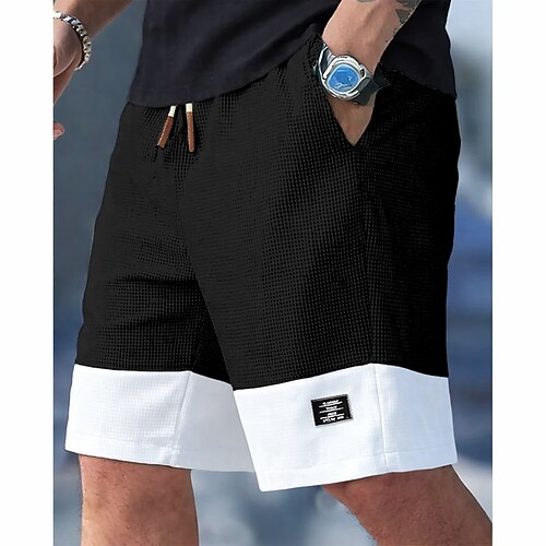 Per uomo Pantaloncini Waffle Shorts Pantaloncini casual Pantaloncini strutturati Tasca Elastico in vita Semplice Comodità Traspirante Sopra il ginocchio Casuale All'aperto Spiaggia Vacanza Moda Nero