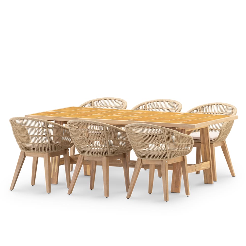 Set pranzo 6 posti tavolo ceramica senape 205x105