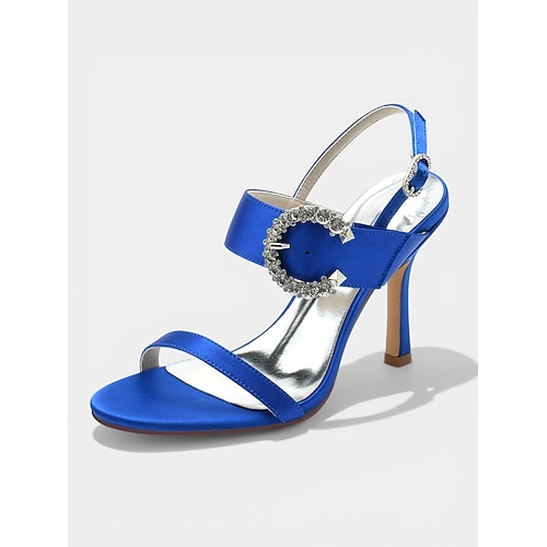Sandali da donna blu navy in raso con tacco alto e fibbia - eleganti scarpe da cocktail con dettagli in strass