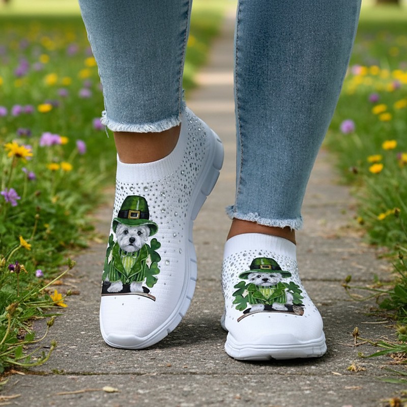 Women's St. Patrick's Day Casual Sneakers with Rhinestone – Shamrock Rainbow Theme, Lightweight Fun Footwear for Festivals, Parties Parades