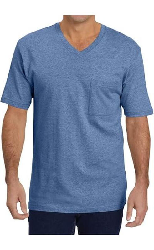 Men's Short Sleeve Pocket T-Shirts Casual Summer Cotton V Neck Tee Tops (blue, L)