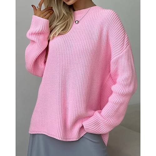 Per donna Maglione Streetwear Casual Morbido Tinta unica A Coste Girocollo Oversize Manica Lunga Top Regolari Maglia All'aperto Quotidiano Ferie Magenta azzurro cielo Autunno Inverno