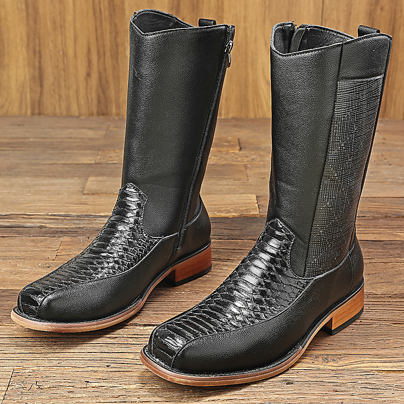Men's Dark Brown Crocodile Textured Boots – Sophisticated and Fashionable, Perfect for Formal Business and Special Occasions