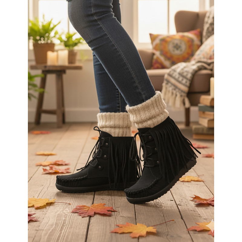 Women's Brown Fringe Moccasin Ankle Bootswith Lace-Up Design for Boho Style - Perfect for Festivals and Everyday Wear