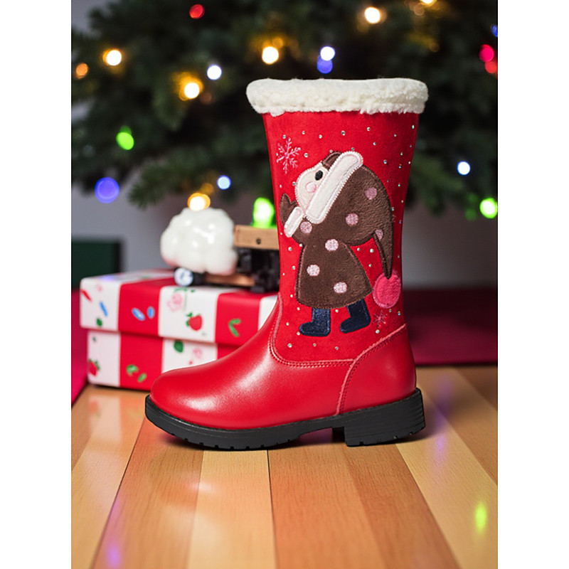 Kid's Red Christmas Boots with Snowman Design and Fur Cuffs- Festive Holiday Style, Perfect for Christmas Parties and Winter Fun