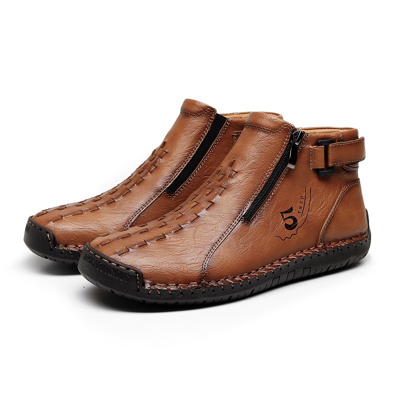 Men's Brown Faux Leather Ankle Boots – Classic Design with Zipper Closure, Perfect for Smart Casual Wear and Everyday Use