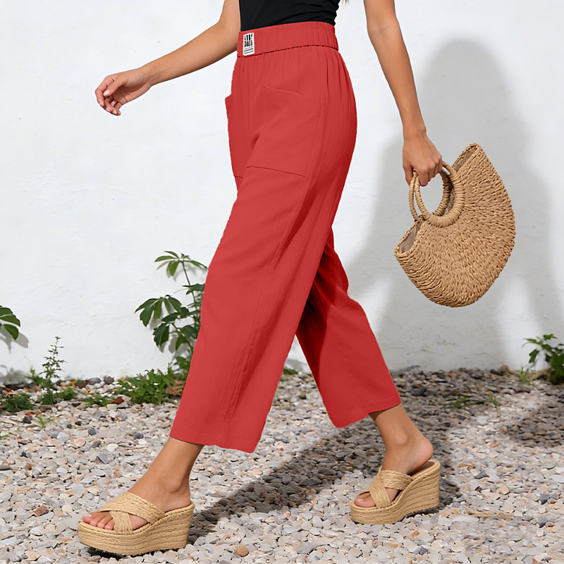 Women's Cotton Linen Pants Slacks Vacation Classic Casual Daily Full Length Mid Waist Plain Pocket Baggy Comfort Soft Breathable Inelastic Streetwear Beach Holiday Apricot Black White Red Summer