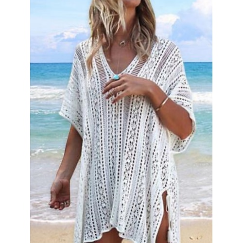 Per donna Costumi da bagno Copricostume Vestito da spiaggia Costume da bagno Taglio Vacanza Abbigliamento da Spiaggia Tinta unica Scollo a V Maniche Corte Costumi da bagno