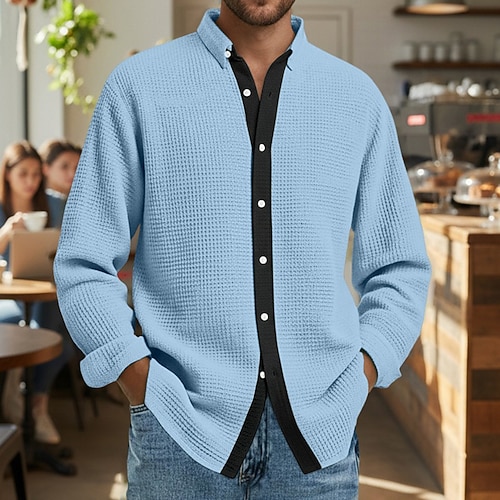 Per uomo Camicia Camicia a nido d'ape Camicia casual Camicia con Bottoni Blu Bianco Vino Verde Kaki Manica Lunga Blocco di colori Bavero Casuale Quotidiano Abbigliamento Moda Moderno Casual