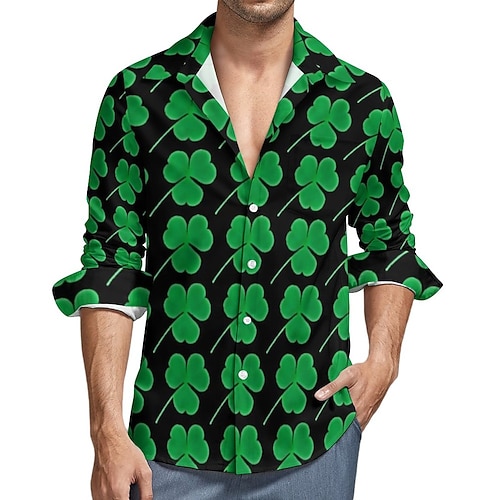 San Patrizio Per uomo Trifoglio Polo Manica Lunga Collo ripiegato Moderno Tempo libero Athleisure Casual Quotidiano Festival Cerniera Stampa 3D Primavera Autunno Nero Bianco Verde
