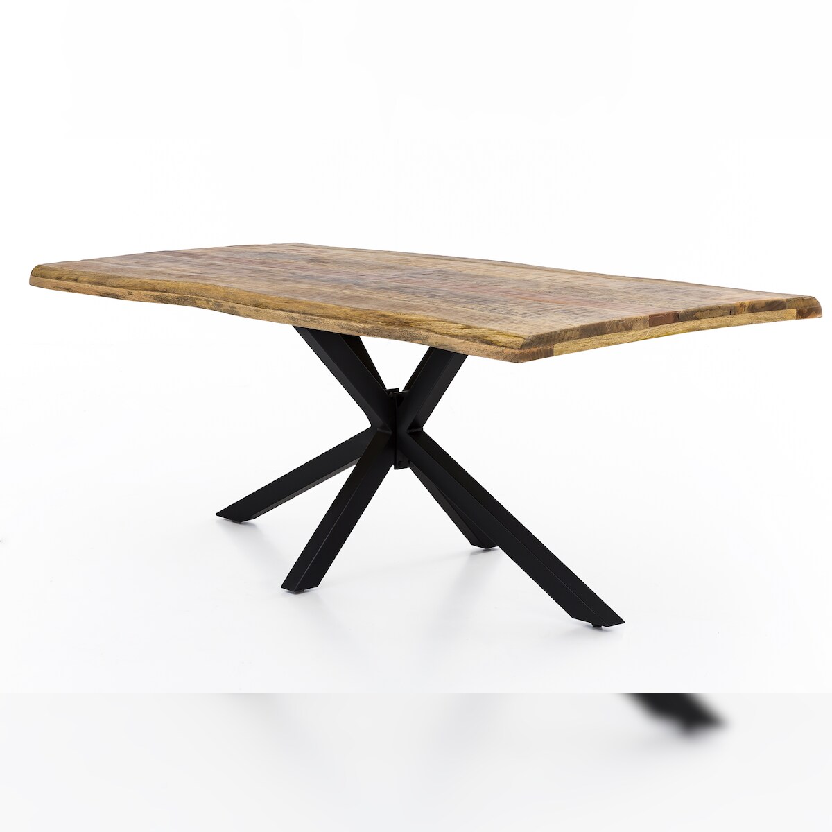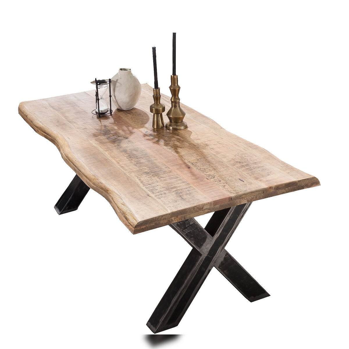 SIT Möbel Esstisch Baumkante 200 cm | Platte 50 mm Mango natur | X-Gestell Metall used look | B 200 x T 100 x H 76 cm | 15222-41 | Serie TABLES & CO