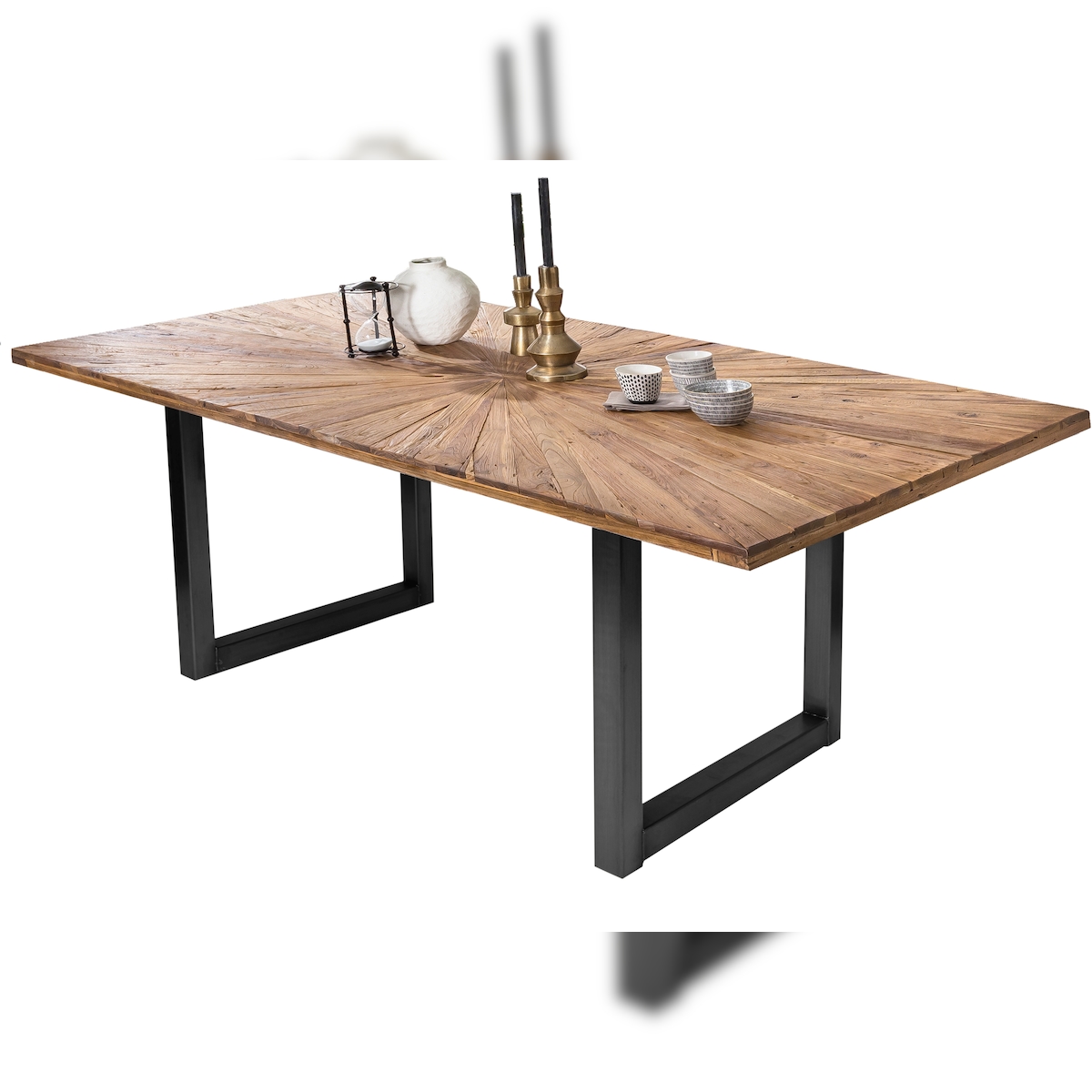 SIT Möbel Esstisch 200 x 100 cm, Platte recyceltes Teak natur, Gestell Metall antikschwarz, B 200 x T 100 x H 75 cm, 15502-11, Serie TABLES & CO