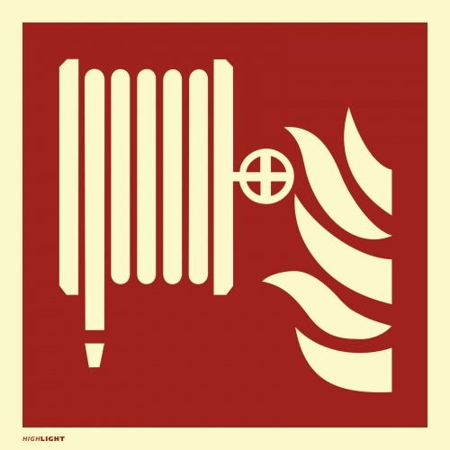 Aufkleber Löschschlauch ISO 7010, Folie, langnachleuchtend, 160-mcd, 400x400 mm