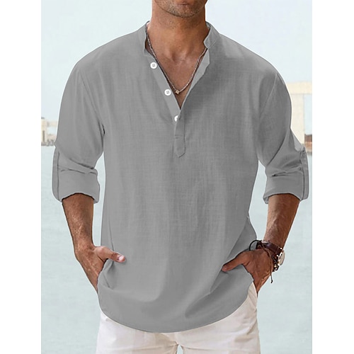 Per uomo Camicia Camicia di lino Camicia casual Camicia da Spiaggia Semplice Vacanza Camicia hawaiana Nero Bianco Blu Marrone Manica Corta Collo alla coreana Primavera Estate Abbigliamento Base
