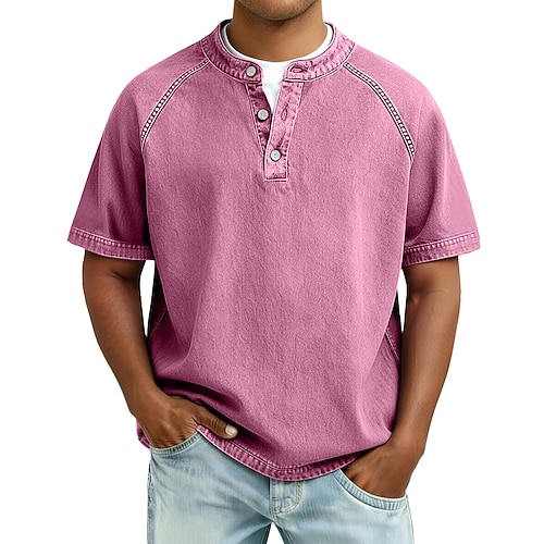 Per uomo Maglietta Maglia Henley Camicia 100% cotone lavaggio acido Manica Corta Semplice Vintage Streetwear Casual Lavato Manica corta Collo alla coreana Henley Casuale Casa Streetwear Primavera