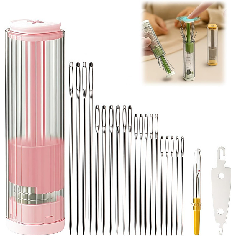 Magnetic Needle Box 23pcs Portable Sewing Storage Case Kit Including 20 Needles,1pc Magnetic Storage Box,1pc Threading Aid,1pc Seam Ripper Multi-Purpose Large-Eye Stitching Needle and Thread Kit