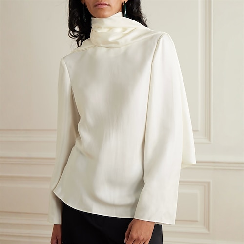 Per donna Blusa Top Eleganti Tinta unica Semplice Elegante Vintage Signore Manica Lunga Collo Alto Top Regolari Quotidiano Lavoro Ferie Arricciato Patchwork Drappeggiato Nero Bianco Primavera Autunno