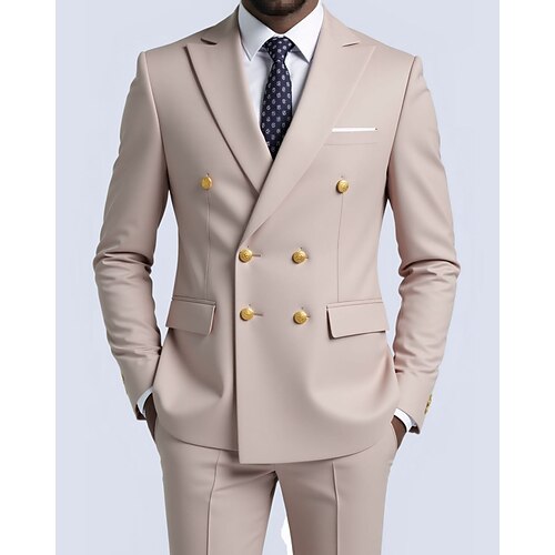Herren Blazer Anzughose Blazer Anzüge Geschäft Cocktailparty Hochzeitsfeier 2 Stück Mode Lässig Frühling Herbst Polyester Einfach Tasche Knöpfe Bequem Doppelreihig Blazer Blau Dunkelgrau Schwarz
