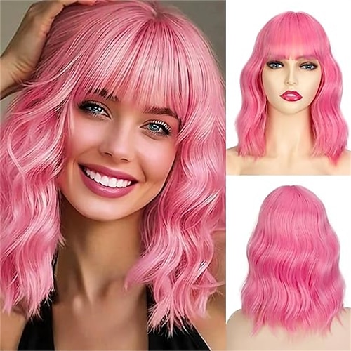 Bob-Perücke mit Pony, 35 cm, Ombré-Blond, kurz, gewellt, hitzebeständig, für Damen, synthetisch, ideal für den Alltag und Partys