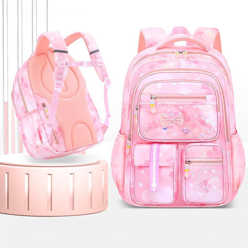 Girls Pink School Backpack – Cute Waterproof Bookbag with Bow and Glitter Design, Lightweight Back to School Bag for Elementary Kids
