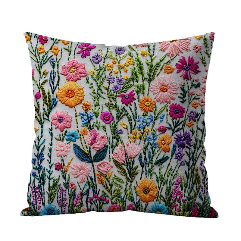 Floral Pattern Pillow Cover 2D Flat Print Soft Comfortable Cushion Case with Faux embroidery for Living Room Sofa Bedroom Home Decoration