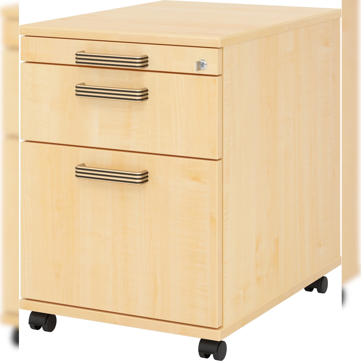 bümö Schreibtisch Schrank abschließbar, Schubladenschrank Holz in Ahorn, Container mit Schubladen - Schubladen Schrank Büro, Schreibtisch Container