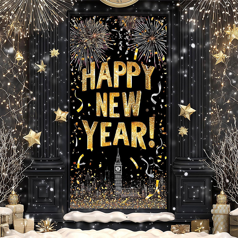 New Year Posters Door Cover Outdoor Banners Happy New Year 2026 Cute 3D Party Dorm Teens Room College Dorm Guys Man Cave Frat Bedroom Shooting Backgrounds Home Decor
