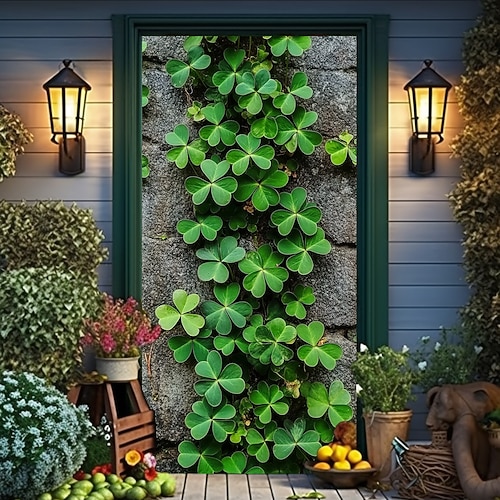 Türdekorationen zum St. Patrick's Day, Türabdeckungen, Kleeblätter, Türteppich, Türvorhang, Dekorationskulisse, Türbanner für drinnen und draußen, für die Haustür im Bauernhaus