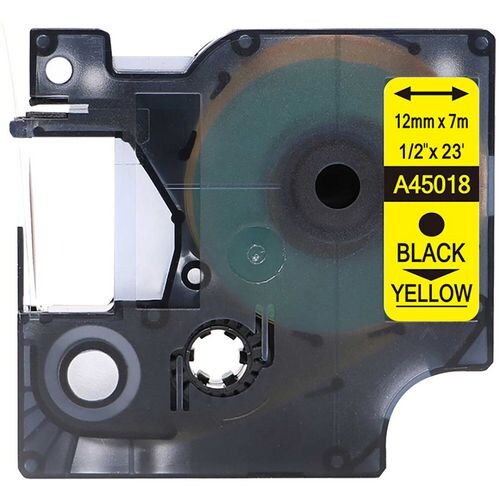 Rillstab Kompatibel Dymo D1 S0720580 / 45018 Schriftband Selbstklebend Schwarzer Druck auf Gelb 12 mm x 7m