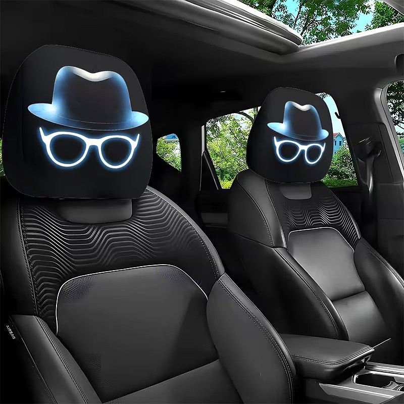 2pcs Cartoon Big-Eyed Face Printed Car Headrest Covers, Interior Decoration, Universal Fit, Washable, Easy to Install, Suitable for Long Trips Or Road Trips, Perfect Quirky Car Decoration