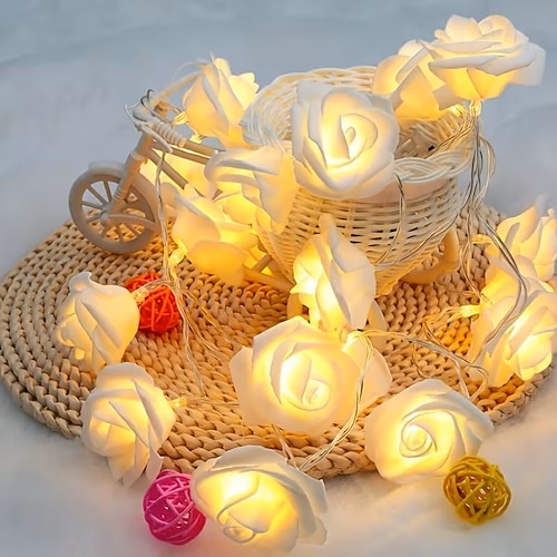 Luci a forma di rosa da 1,5 m, 10 LED, alimentate a batteria, per feste di matrimonio, casa, terrazze, San Valentino, festa della mamma, compleanno, luci decorative da fata