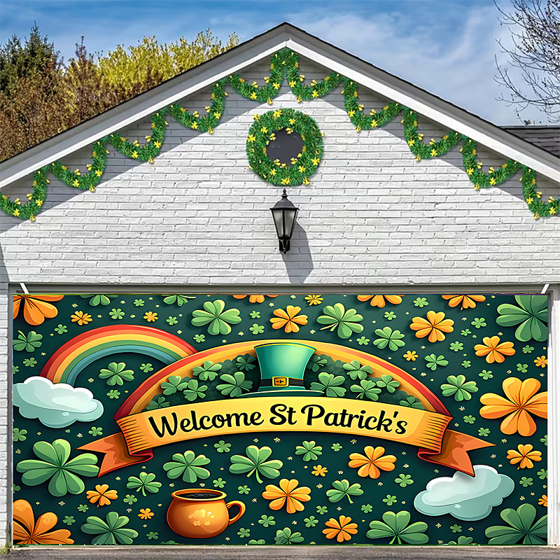 St. Patrick's Day Tapestry Garage Door Cover Large Hanging Backdrop Green Hat Cute 3D Party Outdoor Holiday Shooting Backgrounds Yard Home Decor