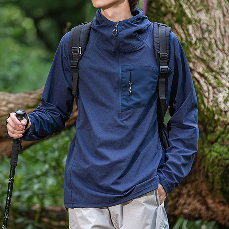 Men's Hiking top Long Sleeve Hooded Top Outdoor UV Sun Protection Quick Dry Sweat wicking Polyester Black Green Grey Tennis Traveling Running