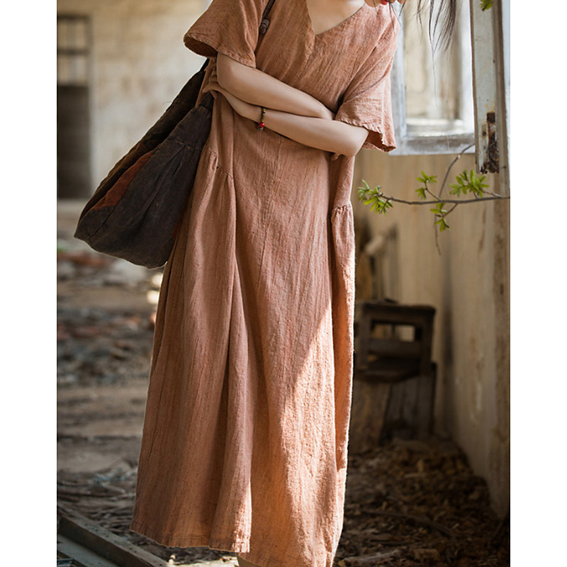 Women's Maxi Dress Cotton Linen Dresses Casual Dress Cotton Maxi Dress Basic Casual Vacation Daily Loose Fit Plain Short Sleeve Crew Neck Khaki Army Green Dark Blue Gray Summer Spring Fall