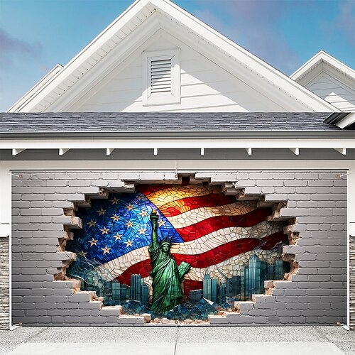 Garagentorabdeckung zum 250. Jahrestag der USA: 3D-Druck mit optischer Täuschung – Freiheitsstatue mit amerikanischer Flagge – patriotische Dekoration für die Feierlichkeiten zum Unabhängigkeitstag am 4. Juli.