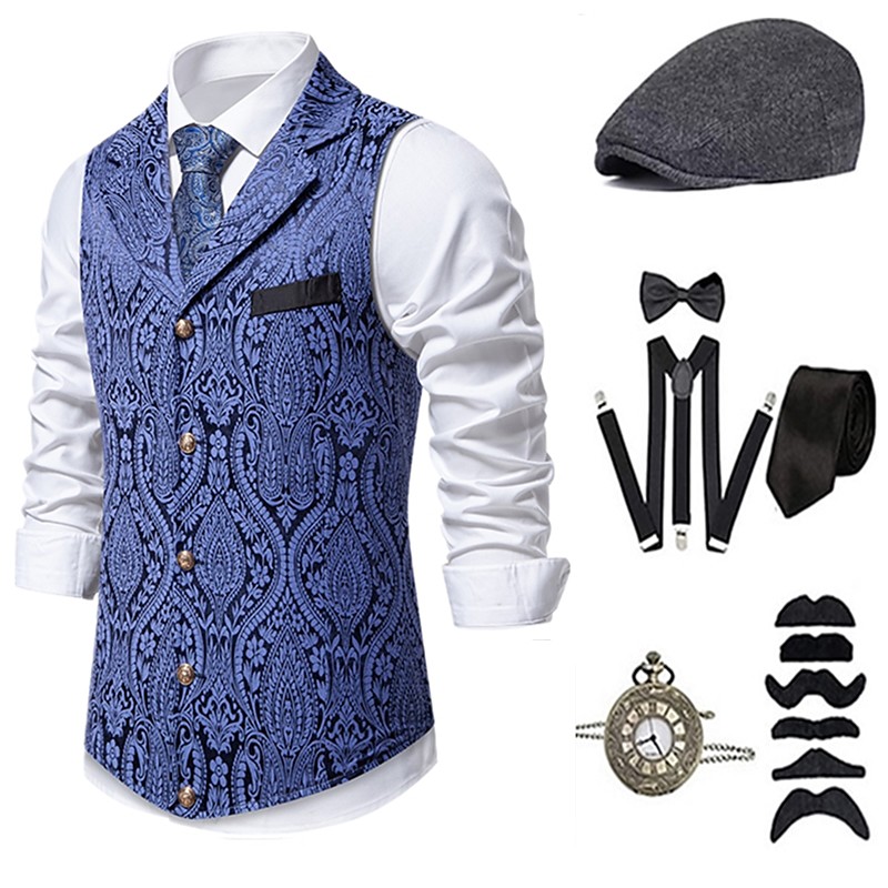1920s Vintage Inspired The Great Gatsby Party Costume Masquerade Accessories Set Sleeveless Printing Turndown Fancy Dress Men's Halloween Party Evening Casual Daily Adults' Vest Hat All Seasons