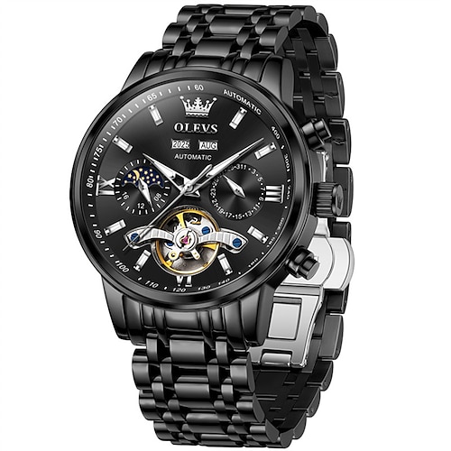 Olevs Herren mechanische Uhr Edelstahl wasserdicht Dual Kalender Luxus Business automatische mechanische Uhren 7075