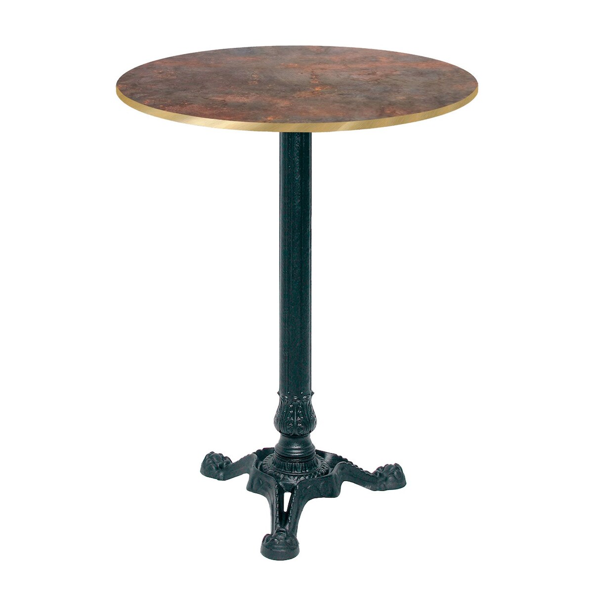 Restootab Stehtisch Bistrot Ø60cm - Modell Underground Rost mit messingfarbenen Kanten