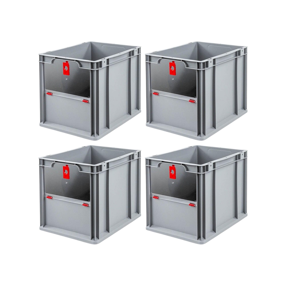 PROREGAL 4x Eurobox NextGen Insight Cover | HxBxT 32x30x40 | 30 Liter | Hoch/Rot | Eurobehälter, Transportbox, Transportbehälter